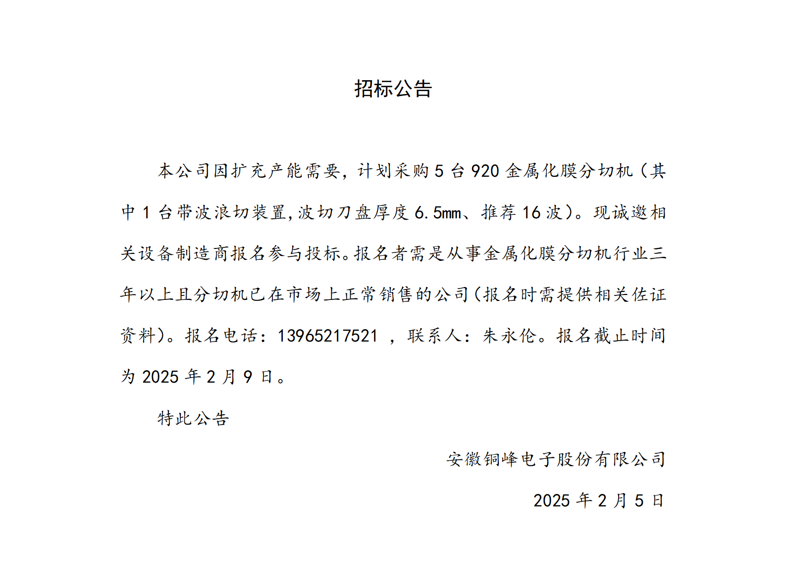 招標(biāo)公告(分切機(jī))
