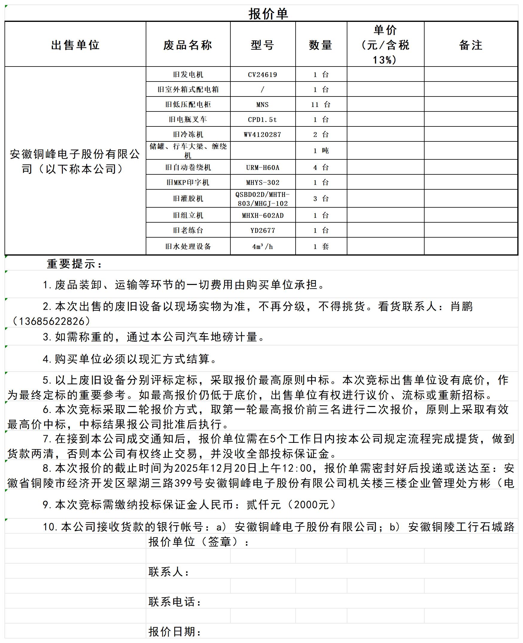 2025年12月廢舊設(shè)備處置報(bào)價(jià)單_Sheet1