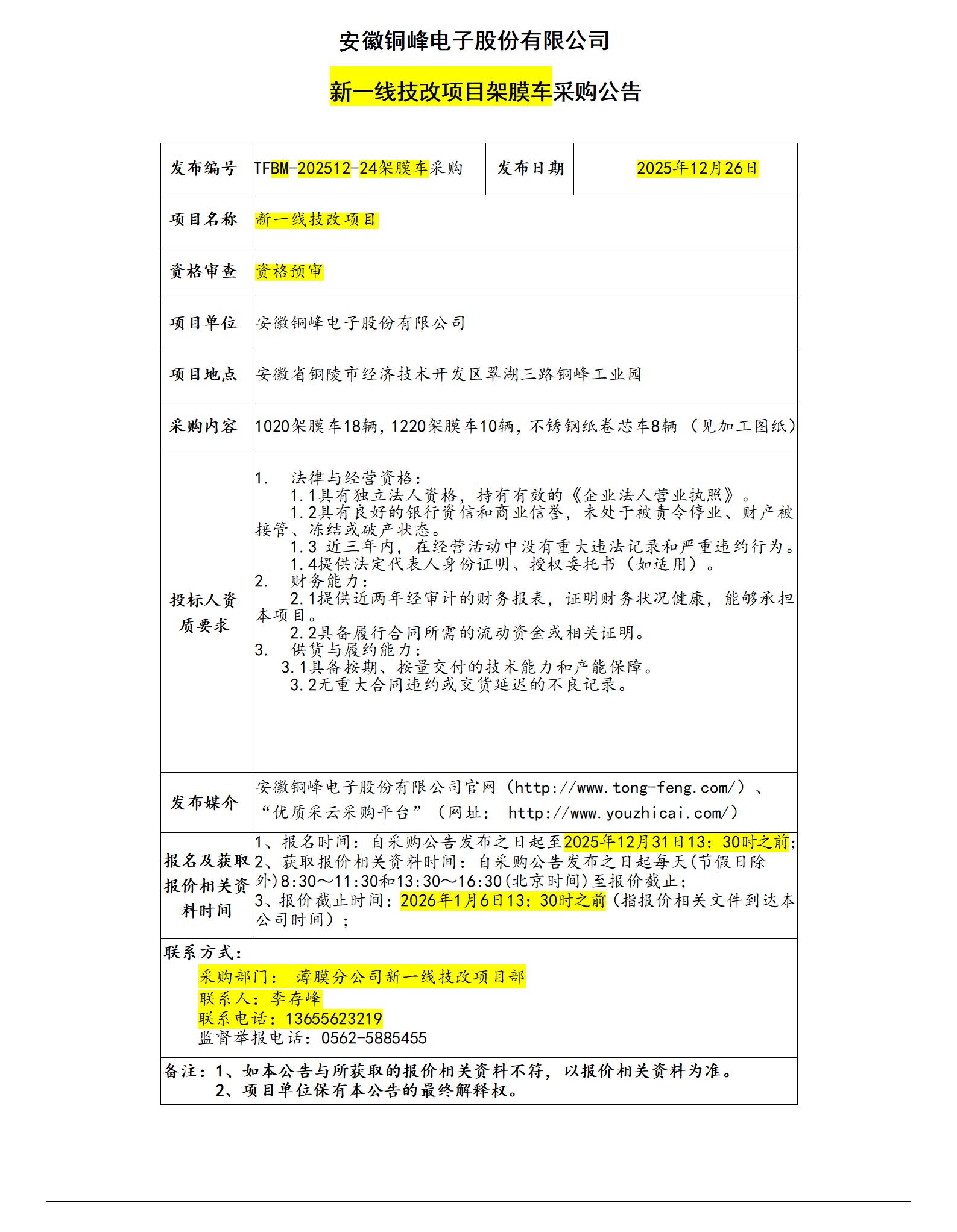 安徽銅峰電子股份有限公司 (新一線(xiàn)架膜車(chē)采購(gòu)招標(biāo)公告)_01