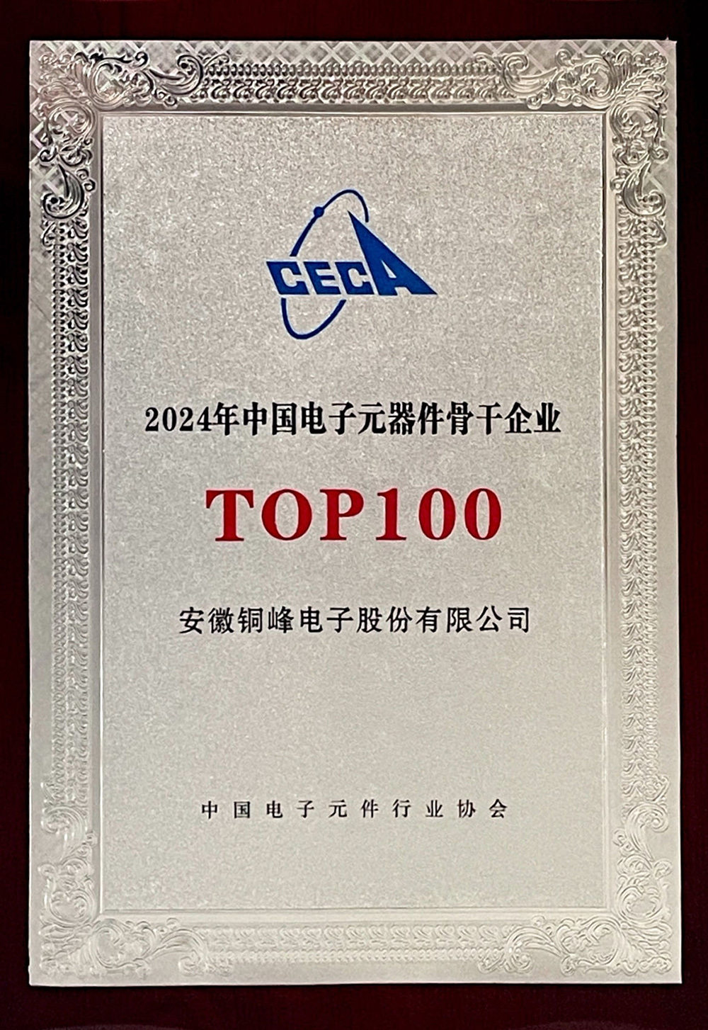 會(huì)議過(guò)程中,除舉辦主題演講、高端對(duì)話、分會(huì)平行論壇外,還舉行了2024年中國(guó)電子元器件行業(yè)骨干企業(yè)授牌儀式,公司再次獲評(píng)“中國(guó)電子元器件骨干行業(yè)TOP100 ”榮譽(yù),這是公司連續(xù)三十余屆入選行業(yè)百?gòu)?qiáng)。