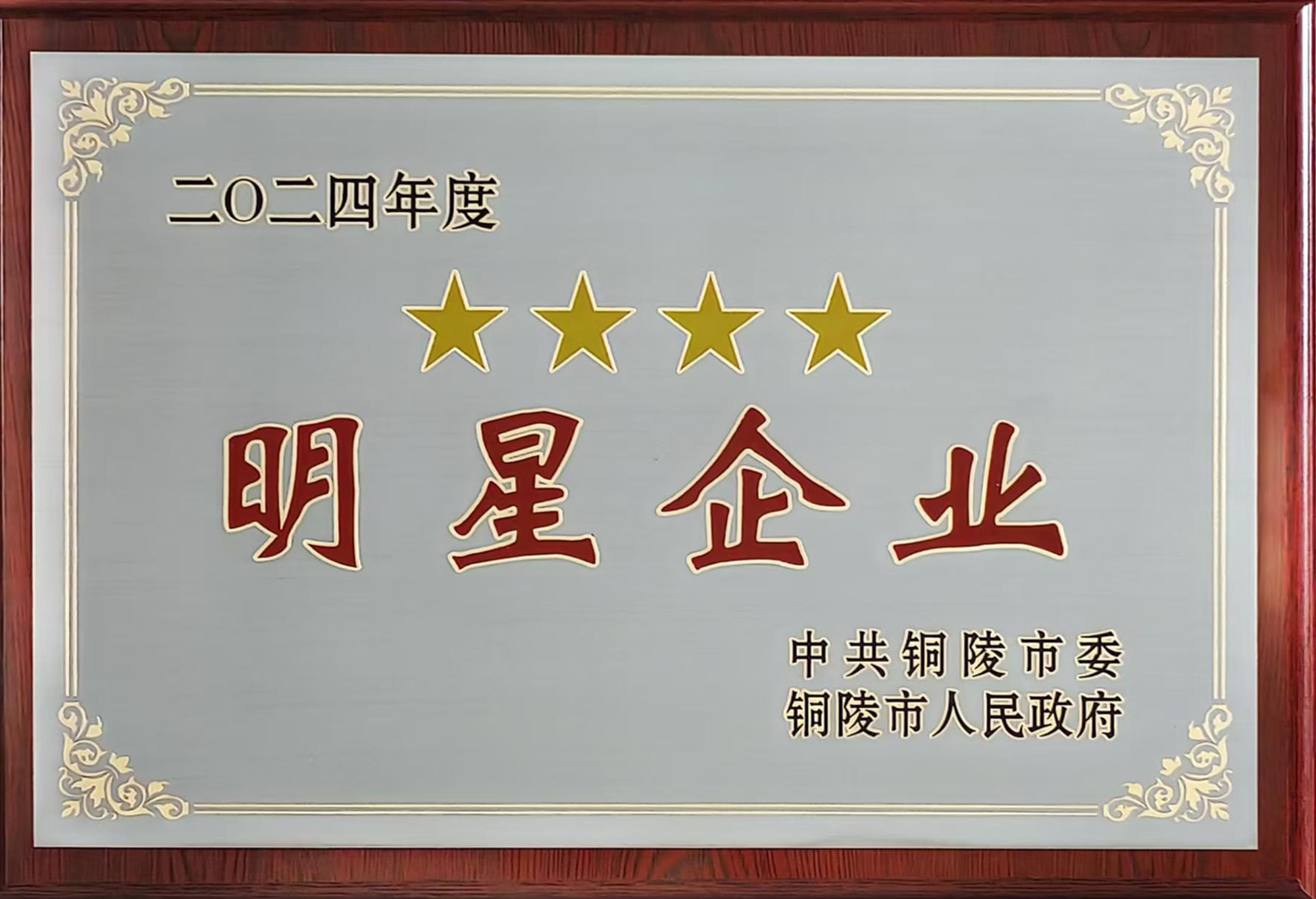2月6日上午,銅陵市在市行政會議中心隆重召開“新春第一會”——全市重大項(xiàng)目提升年暨營商環(huán)境深化年動員大會。會上表彰了2024年度全市突出貢獻(xiàn)單位、星級企業(yè)(其中工業(yè)類五星企業(yè)6家、四星企業(yè)4家、三星企業(yè)14家)、單項(xiàng)貢獻(xiàn)獎(其中稅收增長貢獻(xiàn)獎8家)等先進(jìn)集體和先進(jìn)個人。公司首次獲評“工業(yè)四星企業(yè)”,并獲“稅收增長貢獻(xiàn)獎”,這是公司繼多次獲評“工業(yè)三星企業(yè)”后的又一新突破。公司總經(jīng)理鮑俊華代表公司出席領(lǐng)獎并在主席臺就坐。