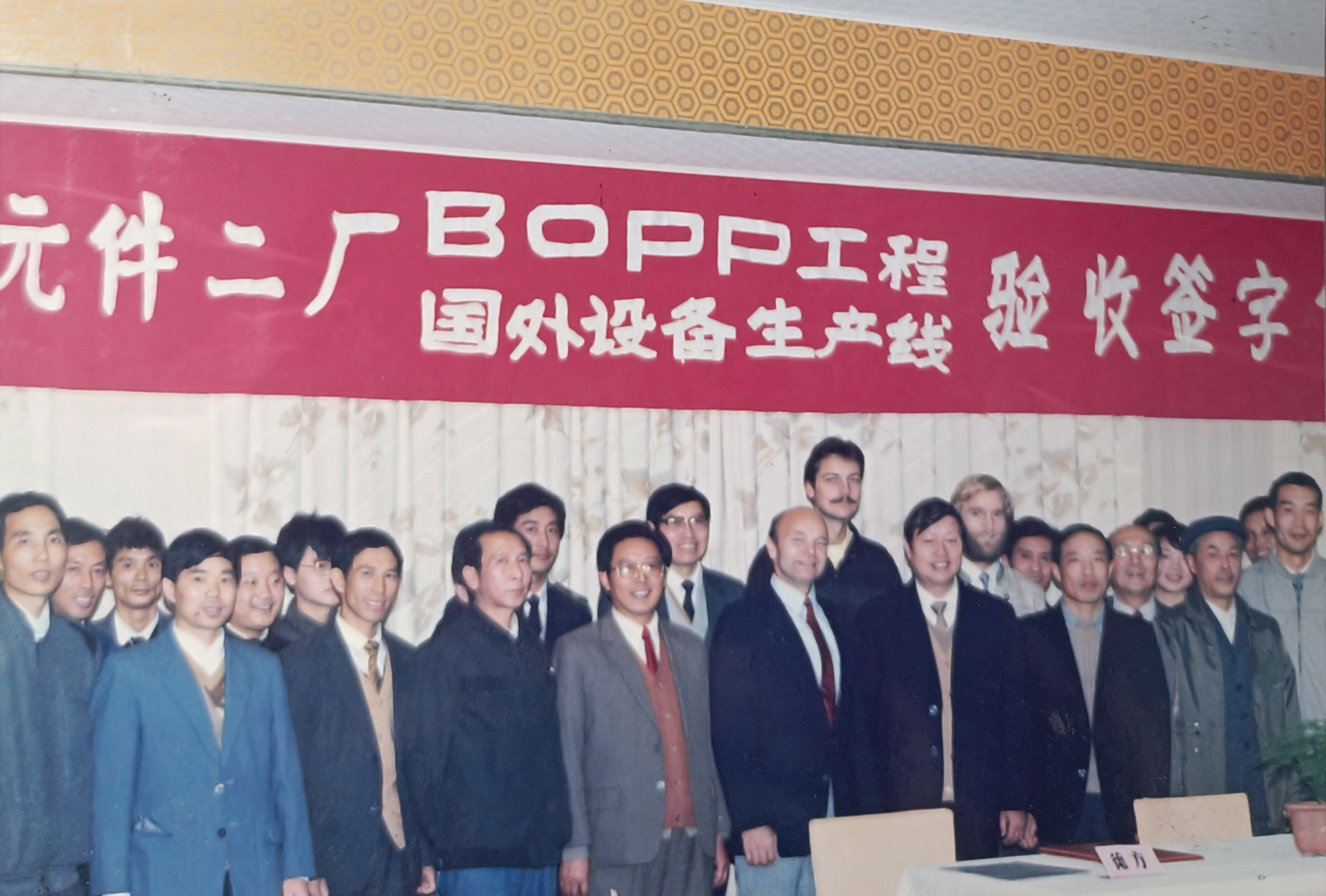 銅峰“老一線”于1989年建成投產(chǎn)。上世紀(jì)80年代,當(dāng)時(shí)國內(nèi)電容器用聚丙烯膜幾乎完全依賴進(jìn)口,嚴(yán)重制約了我國電容器等相關(guān)產(chǎn)業(yè)的發(fā)展。銅峰公司前身銅陵市無線電元件二廠積極響應(yīng)國家需求,決定從國外引進(jìn)雙向拉伸電容器用聚丙烯膜生產(chǎn)線。1985年項(xiàng)目啟動(dòng),經(jīng)過一系列籌備工作,1986年獲得國家計(jì)委批準(zhǔn)立項(xiàng),并被列入國家 “七五” 機(jī)械電子工業(yè)重點(diǎn)技改項(xiàng)目。1988年,主線和相關(guān)輔助設(shè)備成功引進(jìn)。經(jīng)過一年多的緊張建設(shè),1989年生產(chǎn)線正式投產(chǎn)。“老一線”的建成投產(chǎn),是銅峰發(fā)展史上具有重要意義的轉(zhuǎn)折點(diǎn)。該線加速了銅峰公司產(chǎn)品結(jié)構(gòu)調(diào)整和轉(zhuǎn)型步伐,并由此形成了全國唯一的“電工三膜”(電容薄膜、金屬化膜和薄膜電容器)一條龍的生產(chǎn)格局,使企業(yè)的經(jīng)濟(jì)規(guī)模和技術(shù)水平躍上一個(gè)新臺階。