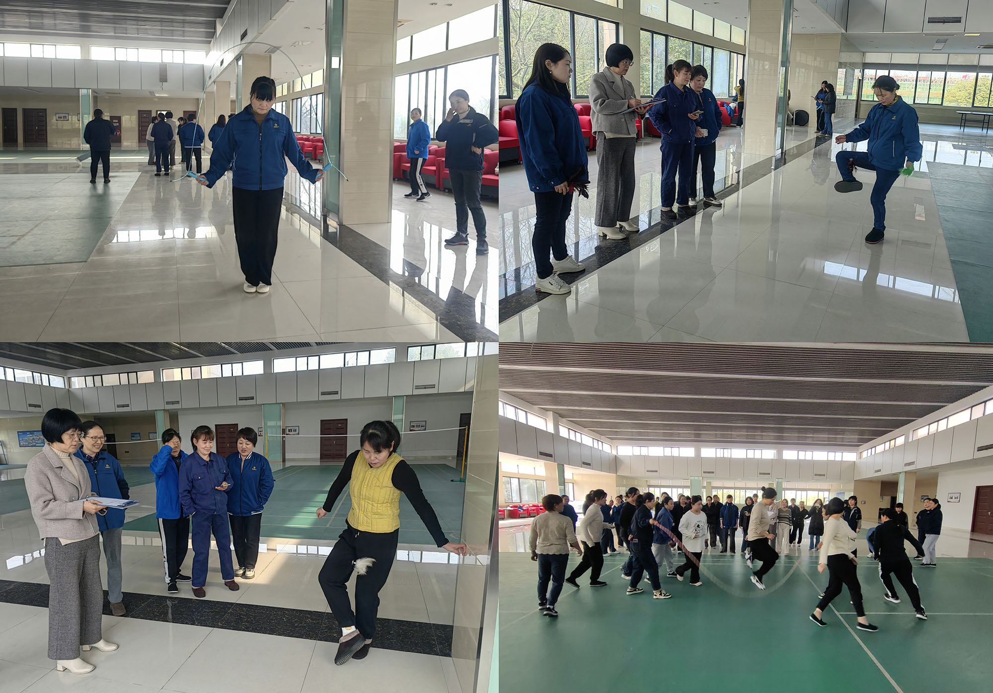 當日上午,女工文體活動在一片熱烈的氛圍中拉開帷幕,吸引了來自公司機關及生產一線的 50 余名女職工踴躍參與。在單人跳繩比賽中,女職工們身輕如燕,腳尖快速點地,跳繩在她們手中飛速旋轉,令人目不暇接,現(xiàn)場歡聲笑語此起彼伏。踢毽子比賽同樣精彩紛呈,大家各顯神通,毽子在她們腳邊有節(jié)奏地跳動,展現(xiàn)出靈動的身姿。而 “十人八字” 集體跳繩項目更是將活動推向高潮。隨著裁判一聲令下,跳繩比賽正式開始,兩位甩繩選手動作整齊劃一,一根長繩快速旋轉,隊員們依次進入跳繩區(qū)完成跳躍。這一項目不僅考驗個人的反應速度與身體協(xié)調性,更需要團隊之間的默契配合,充分展現(xiàn)了女職工們團結拼搏的精神風貌。